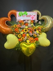 特別な日を華やかに演出するためにデザインされた『1段バルーンスタンド花』は、お祝いの場にぴったりのアイテムです。風船が添えられた可愛らしいスタンド花は、見る人の心を和ませ、明るい雰囲気をさらに引き立てます。色とりどりの風船が、花々と見事に調和し、あなたの大切なメッセージを心から伝えます。誕生日や歓送迎会、その他のお祝い事に最適なこの商品は、特別な人への贈り物として非常に人気があります。